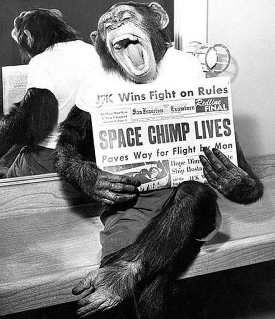 Mientras, aquí abajo, nosotros contemplamos ignorantes el firmamento y le cantamos a la luna, hay toda una fauna que flota ahí arriba, tranquila e ingrávida. Seguro que Ham lo sabía.