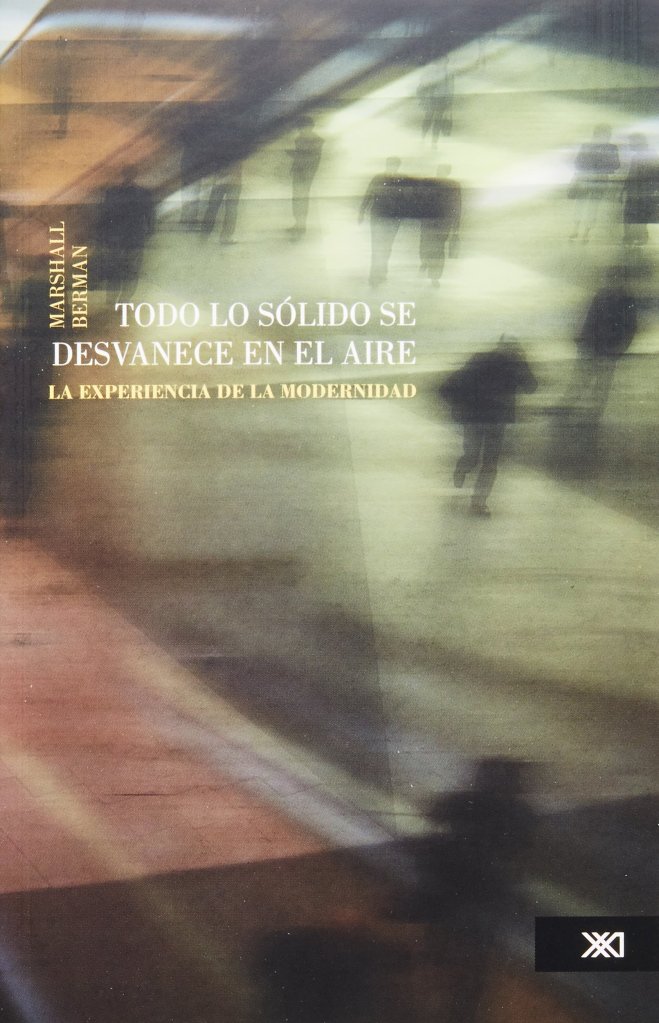 Modernidad es una palabra con muchas connotaciones a través del tiempo y que conlleva a una inevitable asimilación de la época que nos toca vivir. Marshall Berman nos habla en su libro “Todo lo sólido se desvanece en el aire” de los cambios a nivel social, político, individual y sobre todo cultural que remesen las creencias en las que se han sostenido nuestras tradiciones por siglos. El autor propone una crítica a la modernidad impuesta, que nos aparta de nuestro pasado y origen. Él desea que veamos la realidad como una constante, un proceso empezado hace doscientos años y que aún nos mantiene en conflicto por las transformaciones que acarrea. Nos la muestra como parte del devenir histórico y que el “trauma de la modernización” siempre ha sido experimentado por sociedades y culturas distintas con consecuencias diversas. Sin embargo, rescata de ellas el análisis de sus experiencias para permitirnos nutrir y fortalecer la “nueva” modernidad experimentada y a la que nos dirigimos