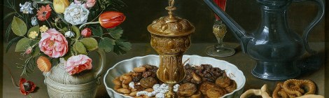 MUSEO IRREVERENTES: “Bodegón con flores, copa de plata dorada, almendras, frutos secos, dulces, panecillos, vino y jarra de peltre” (1611)